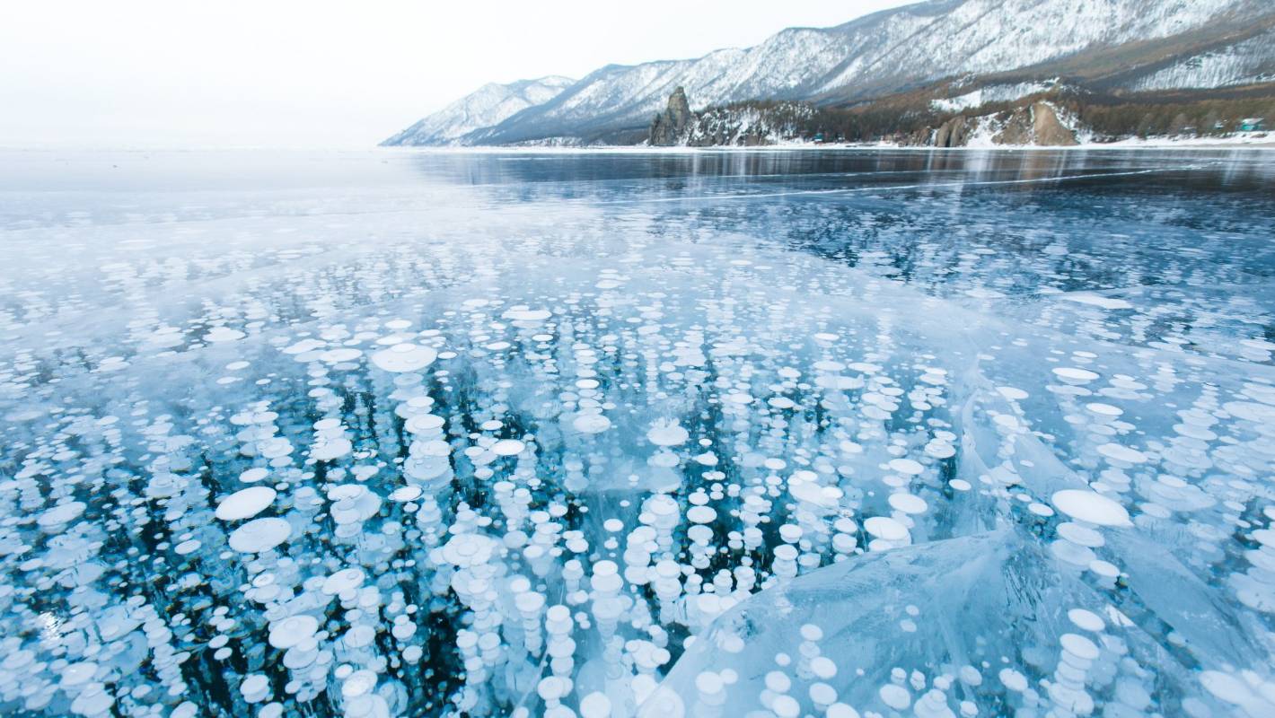 Turquoise Ice Lake in Baikal, Russia