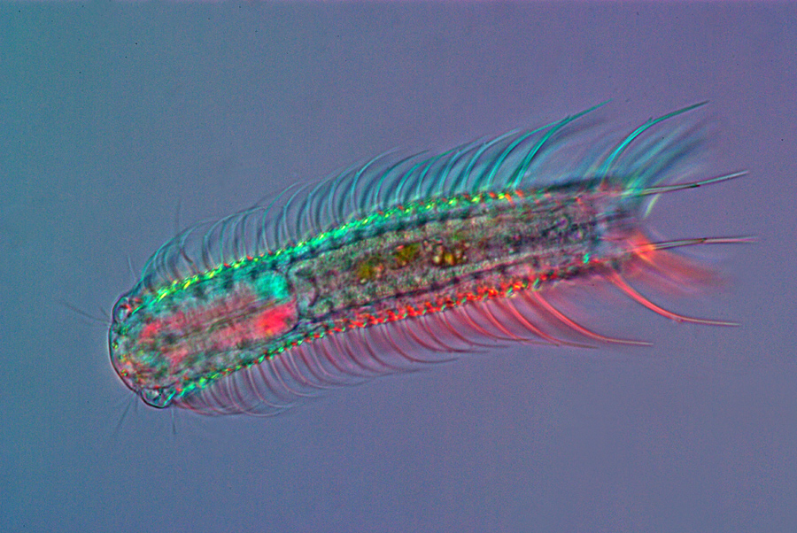 Gastrotrich is a microscopic worm-like animal found in freshwater and marine areas. About 3 mm in length, the animal’s lifespan lasts just for three days. They normally tend to feed on dead and living organisms. Further, their body plan is simple with just head, brain, gut, reproductive and sensory organs. For reproduction, Gastrotrich uses a special tubular like structure to get attached to other organisms for the reproduction process. The eggs will be hatched in less than four days in perfect environmental conditions. Usually, it is considered that they are even capable of surviving in dry pools and stagnant areas apart from freshwater habitations.