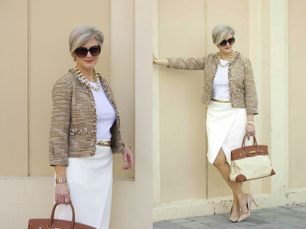 Если вам нужно эффектно появиться, то здесь поможет образ в белом. Например, комплект, который немного отличается по оттенку: укороченные брюки в комплекте со свитером с высоким воротом и свободным пальто с двубортной застёжкой. Образ дополнят ботильоны на толстой рельефной подошве и комбинированная сумка из замши.