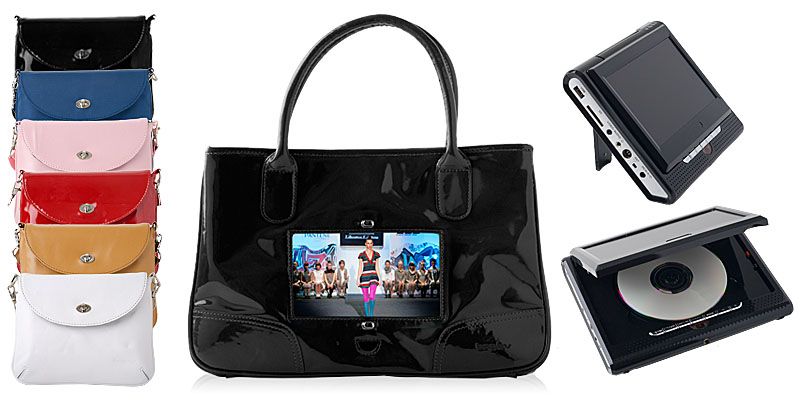 A TV in your bag – this is something all of us may only dream of, but, it really does exist. This is a handbag with a 7-inch LCD screen. You may buy the bag alone or the bag along with the TV set. What you can do best is buy all the bag in every available color and one that comes with the TV. This gives you the chance to match your bag with your dress.