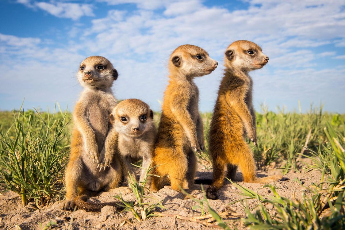 The meerkat or suricate is a small mongoose found in southern Africa. It is characterised by a broad head, large eyes, a pointed snout, long legs, a thin tapering tail, and a brindled coat pattern. Meerkats are extremely social, and often groom or play with each other. They tend to live in groups; Meerkat groups have a highly developed social structure, with individuals playing various important roles in the community.